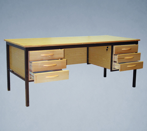 Bureaux de direction et bureaux d'Enseignant : Structure métallique en tube carré 35x35 mm, épaisseur 1,5 ceintu-rage en tôle 15/10, revêtu Epoxy, couleurs au choix suivant nuancier. Plateau stratifié, protégé par des alèses en bois vernis ou PVC, le caisson tiroir est solidaire de la structure.