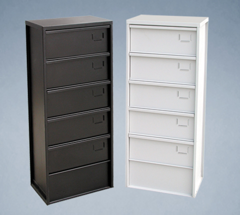 Armoires Métallique et Caissiers de rangement : Rayonnage métallique modulable, évolutif. Système solide de rangement, stockage et de présentation. Tablettes en tôle pliée, épaisseur 10/10, réglables en position. Epoxy, couleurs au choix suivant nuancier.
